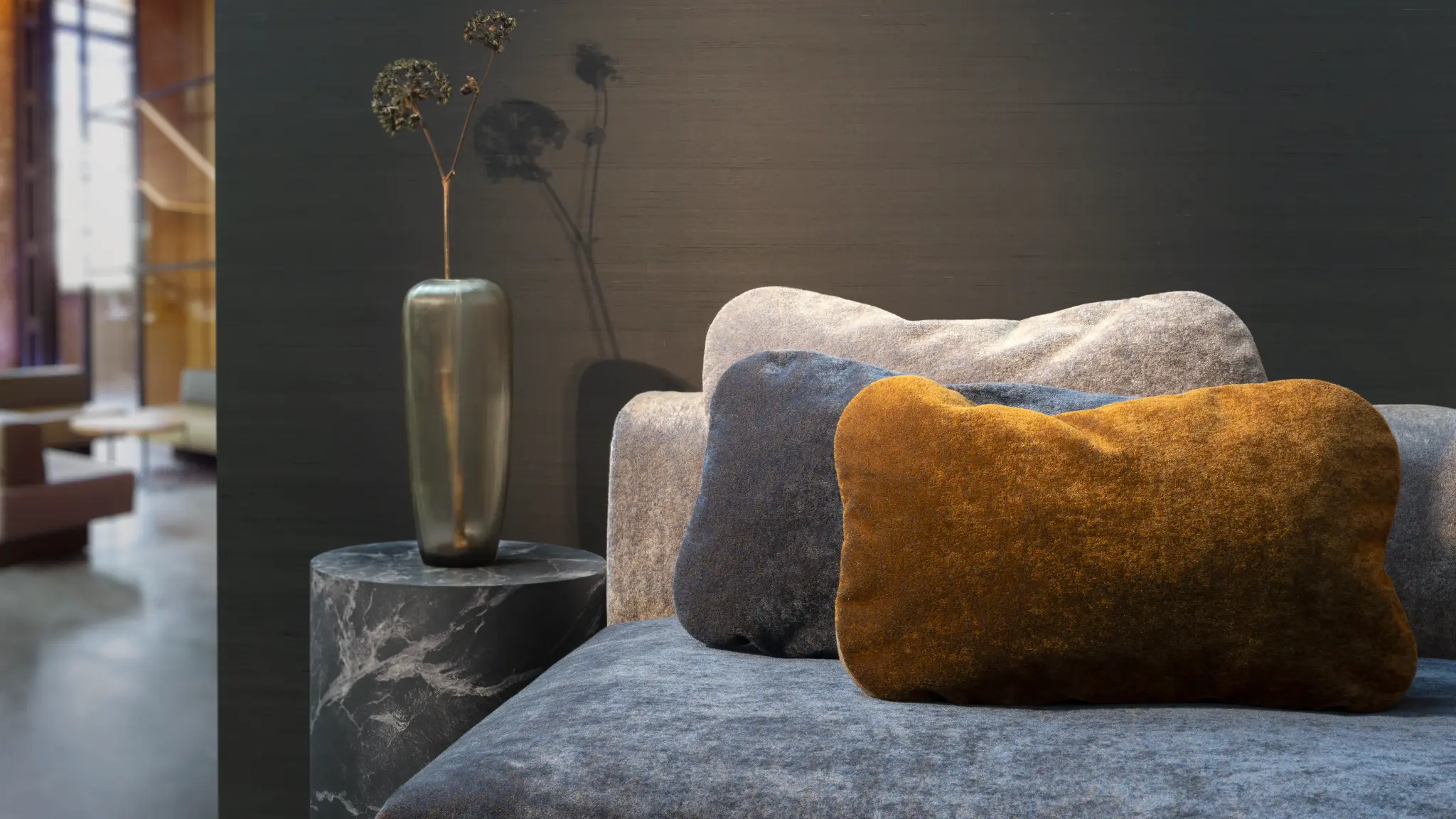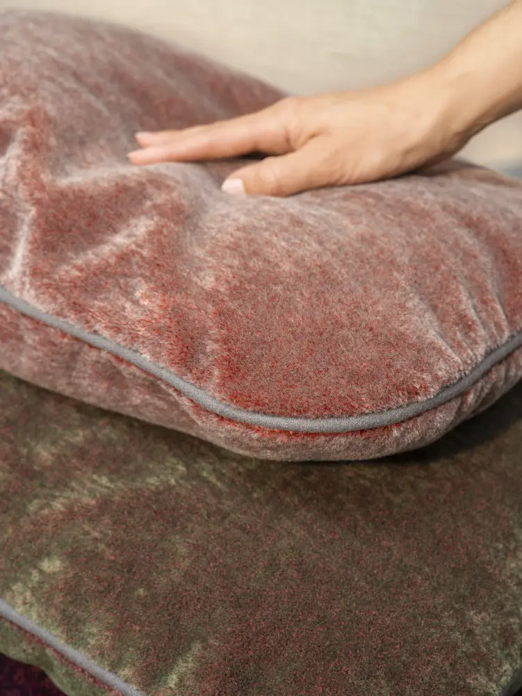 Onyx truly comes to life when applied to furniture. As the fabric moves, it reveals a spectrum of shifting shades, while its natural sheen lends a luminous glow that enhances the interplay of ever-changing tones. It picks up and interacts with light in interiors, creating added depth and dynamism.