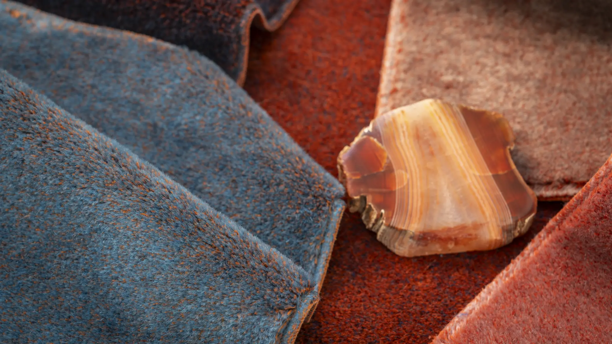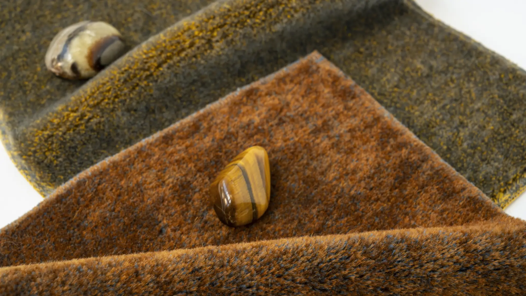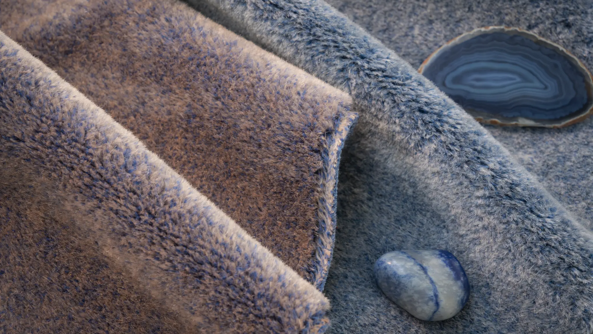 Its 16 distinctive two-tone colourways are created during the dyeing process through the interplay of the materials in its pile composition: 70% mohair and 30% cotton.