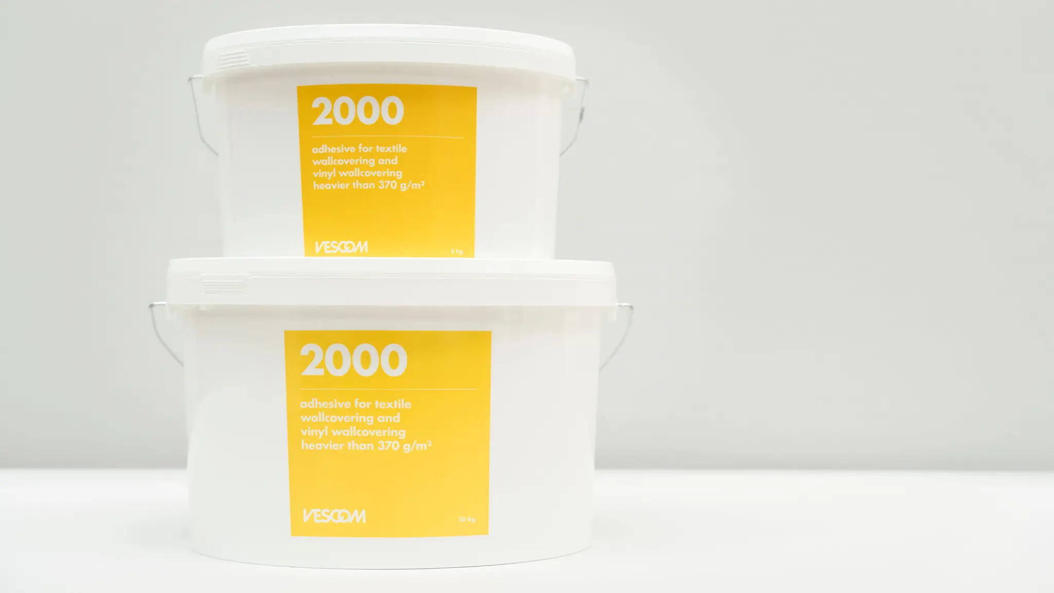 Vescom 2000 adhesive can be used to hang any textile, olefin and vinyl wallcovering (heavier than 370 g/m2). Stir thoroughly before use. The adhesive can be diluted with up to 6% water depending on the circumstances, such as the ambient temperature, the condition of the underlying surface or the type of structure. Before use, stir the Vescom 2000 adhesive thoroughly and apply it using a short haired synthetic roller. Remove residual adhesive on vinyl wallcovering immediately with clean water and dry the same off. Take care to ensure that there are no adhesive and water droplets on the textile wallcovering. For further information, consult the general hanging instructions for Vescom wallcovering. The adhesive should be stored at a relatively stable temperature. Do not apply at temperatures < +5 °C and/or air humidity > 70%.