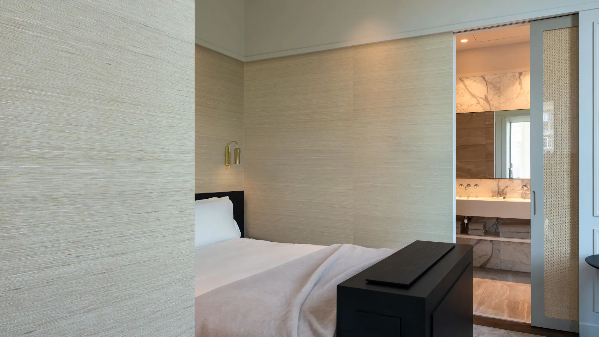 With a history that dates to the 7th century, silk has long been heralded as one of the world’s ultimate luxurious fabrics. It organically aligns in interiors with other high-end natural materials like marble and stone, creating a feeling of overall opulence. Sinkiang embodies this high-end appeal. The 100% natural silk wallcovering has a matte appearance yet produces a soft luminance in interior spaces.